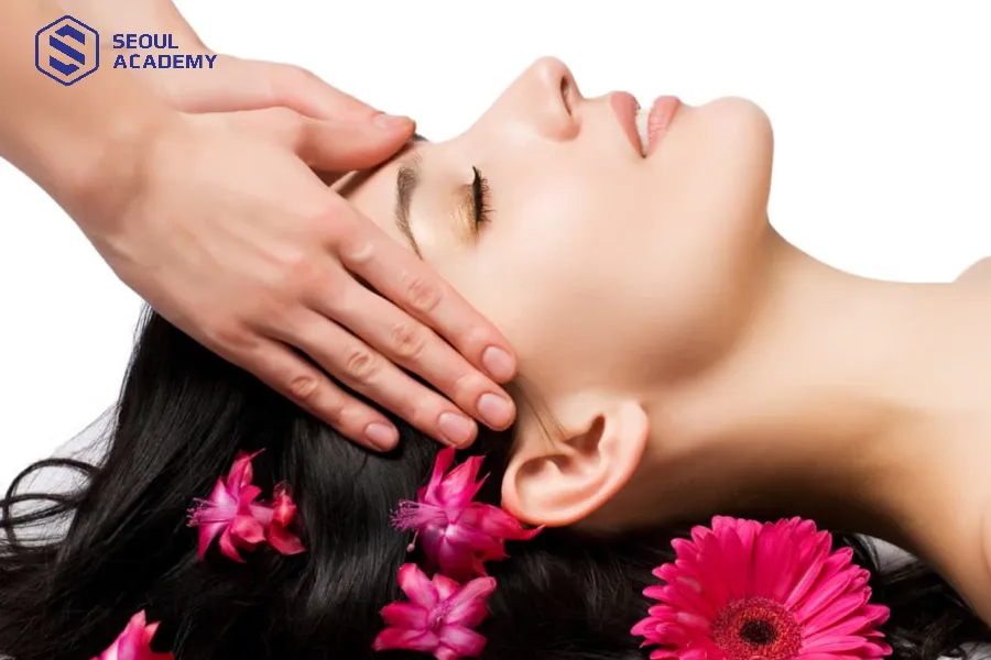 - Cùng với đó, massage kéo dài rộng ra vùng trán đến 2 bên thái dương để tăng thêm cảm giác thư thái.