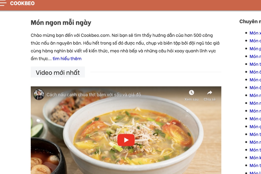 Website dạy nấu ăn Cookbeo